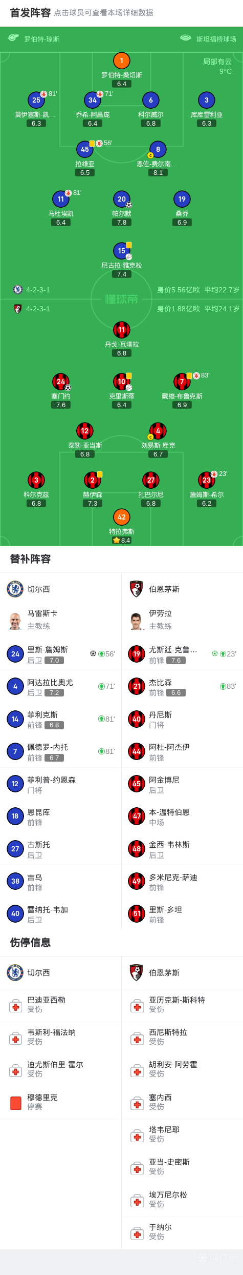 6. 尽管切尔西在比赛中遇到了困难,但里斯-詹姆斯在比赛快结束时的一次任意球破门,帮助球队在补时阶段扳平了比分。